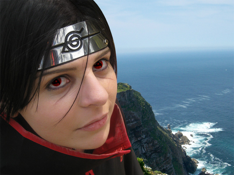 Deidara and Itachi were the first cosplays we did together. We wore these to Cosplay Day Out 2011 and Friday for Anime Matsuri 2011. These are probably retired from con action unless they are specifically requested or there is going to be other Akatsuki cosplayers. These cosplays were commissioned; everything for them was bought except the shoe covers, which we made ourselves by hand. Aimee styled the Deidara wig with an unusal technique she came up with herself to make the pony tail look right. Deidara is cosplayed by Aimee and Itachi by Maria.