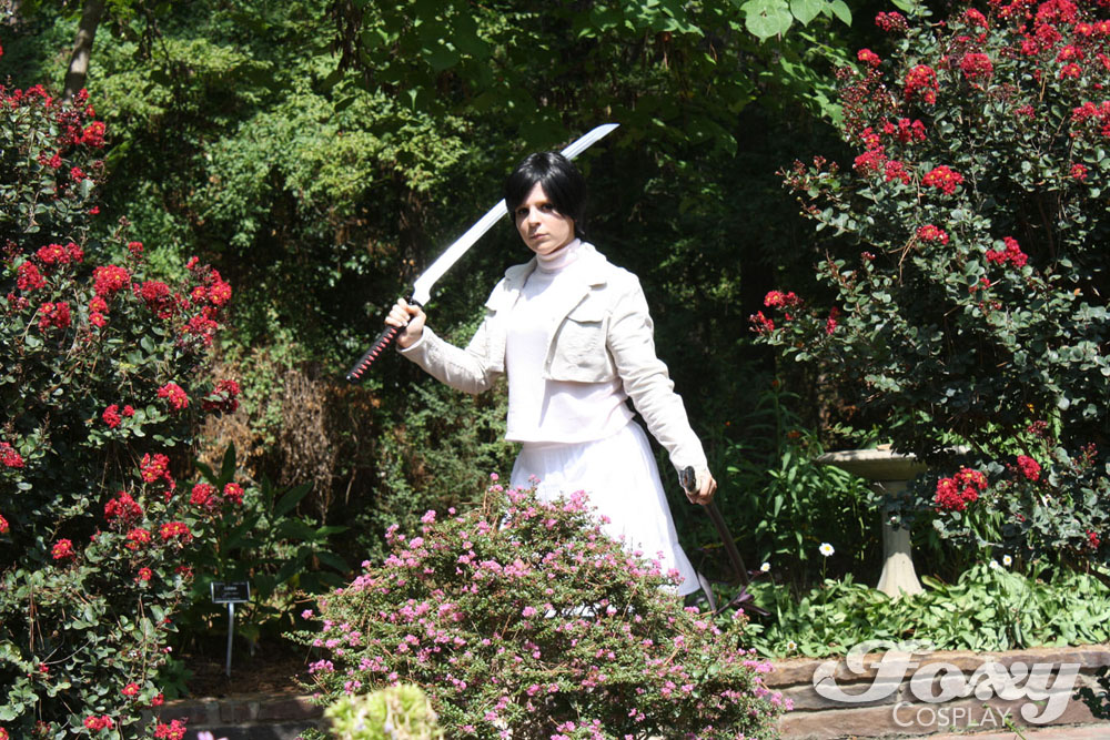 There are multiple cosplays from this series for Saya: the 1800’s pink dress, return to the zoo outfit, and killer Vietnam Saya. Diva’s and Saya’s 1800’s dresses were drafted and made by Maria. The other Saya cosplays were modified from normal clothing. The wigs were styled by Aimee. Diva is cosplayed by Aimee and Saya by Maria. The dresses will be debuted at Mechacon 2011.